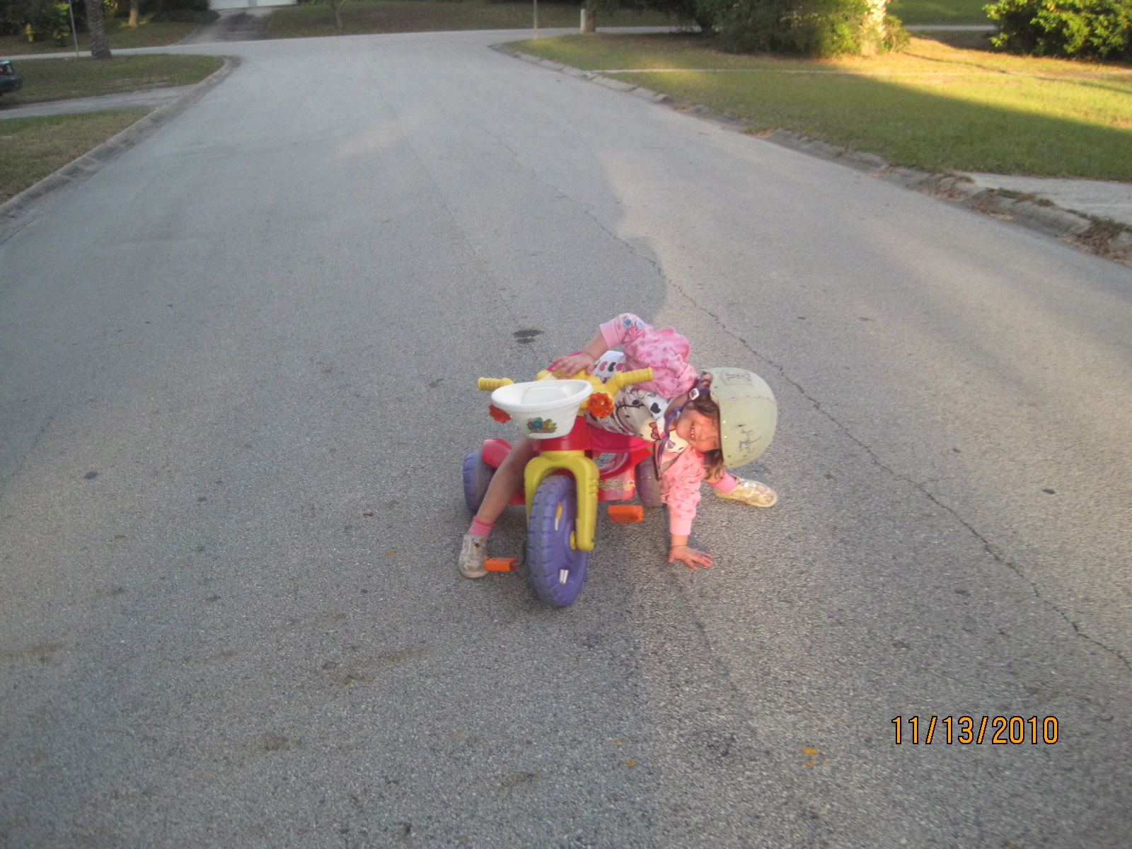 So last night during some Black Friday shopping she tried out the 2 wheeler with training wheels and I was amazed that she took right to it. (Oh and it was late in the afternoon, and believe or not there weren't that many people at Walmart - hope that isn't a sign that the economy isn't getting better).